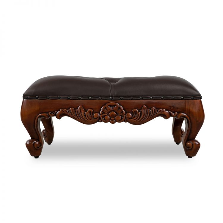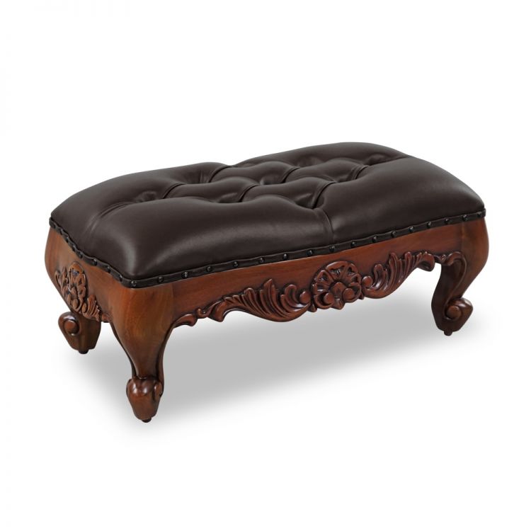 Если необходимо придание завершенного вида обстановке гостиной или спальни, то тогда пуфики из Индонезии - наилучший способ "поставить точку". Пуф ручной работы не нарушит гармонии ни в одной из комбинаций предметов интерьера, только дополняя общее впечатление от красоты этих предметов "изюминкой" своей самой выигрышной составляющей - резьбы по дереву. Пуфик из массива достоин признания "точкой схождения" трех начал - элегантной композиции, изысканного декора и комфортабельного сиденья. Одного взгляда на этот элегантный предмет достаточно, чтобы напомнить о традициях изысканного оформления аристократических салонов. Резной пуф с сиденьем обит натуральной кожей роскошного коричневого цвета, кожа по всему периметру прибита мебельными клепками, в центре - стянута каретной стяжкой - капитоне. По своему дизайну этот пуфик из красного дерева выполнен в стиле Королевы Анны. Этот пуфик удобен для отдыха, когда для полного комфорта хочется, сидя в кресле, сложить ноги на удобную подставку. Пуфы не обманывают и другим своим характерным свойством - характерной компактностью и небольшими размерами. Пуф из массива дерева способен и разделять, и соединять собой любые элементы композиции, что бы не выбрать его партнером по дизайнерскому решению. Предложение купить у нас пуфик ручной работы содержит и такую привлекательную составляющую, как уровень цены, определенной в районе нижней границы ценового диапазона. Пуфы из Индонезии поступают к нам по схеме прямой поставки, непосредственно со склада предприятия-изготовителя. Наше предложение учитывает буквально любой важный момент, и потому лучше пренебречь ненужным поиском и сравнением и приобрести пуф из массива прямо сейчас.